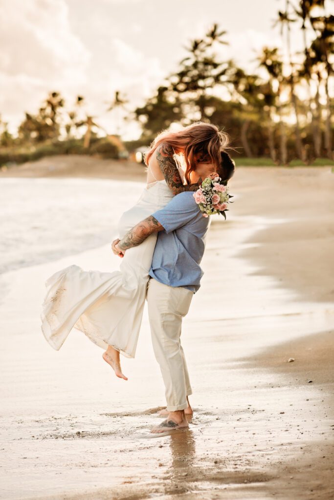 Golden Hour Elopement Photography at Kahala Beach