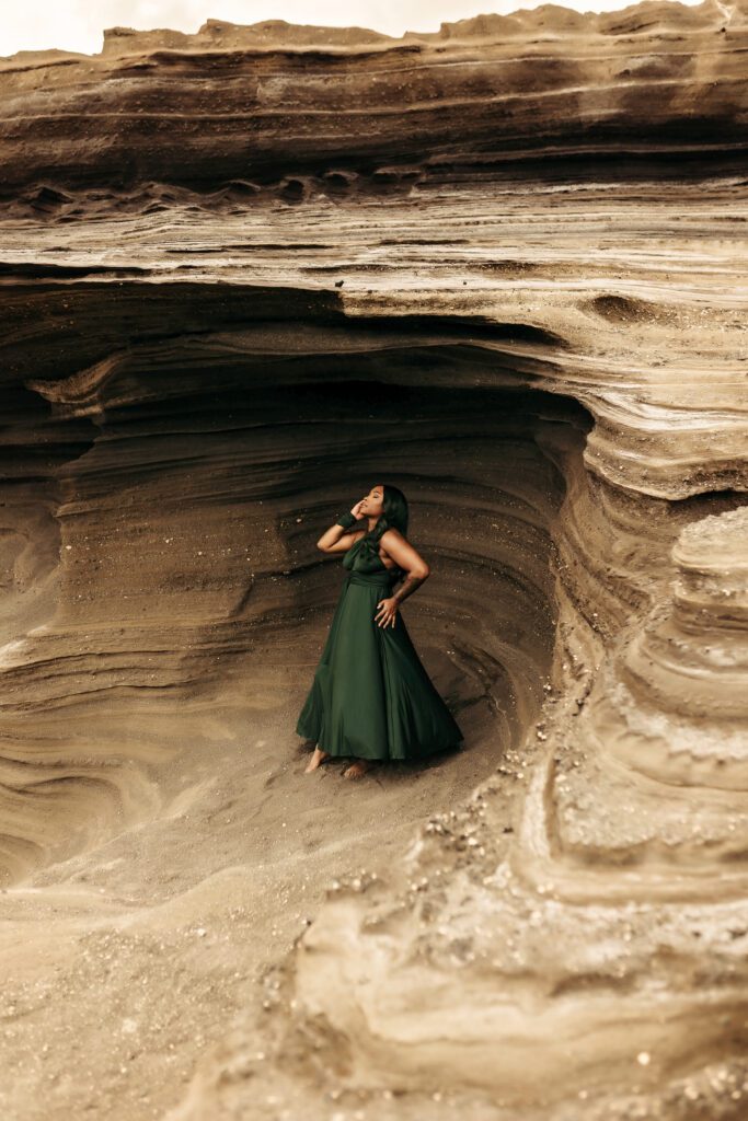 Lanai Lookout is a unique location for a solo photoshoot in Oahu. The rugged landscape, earthy tones, and open space create portraits that feel grounded, timeless, and editorial.