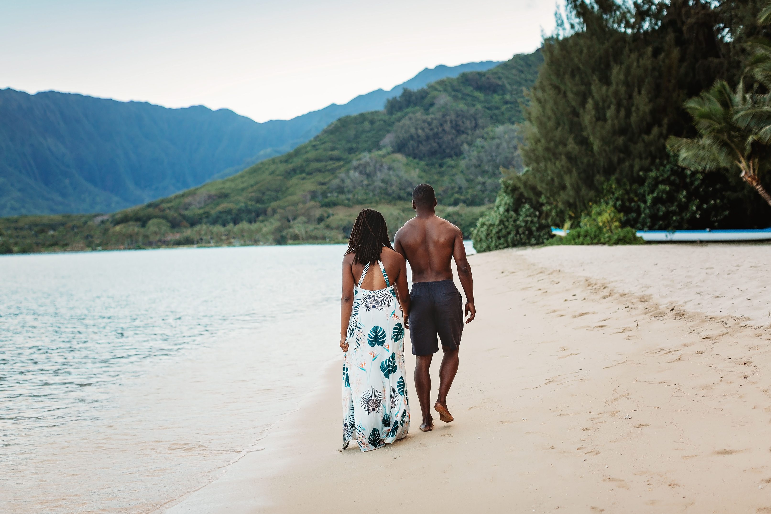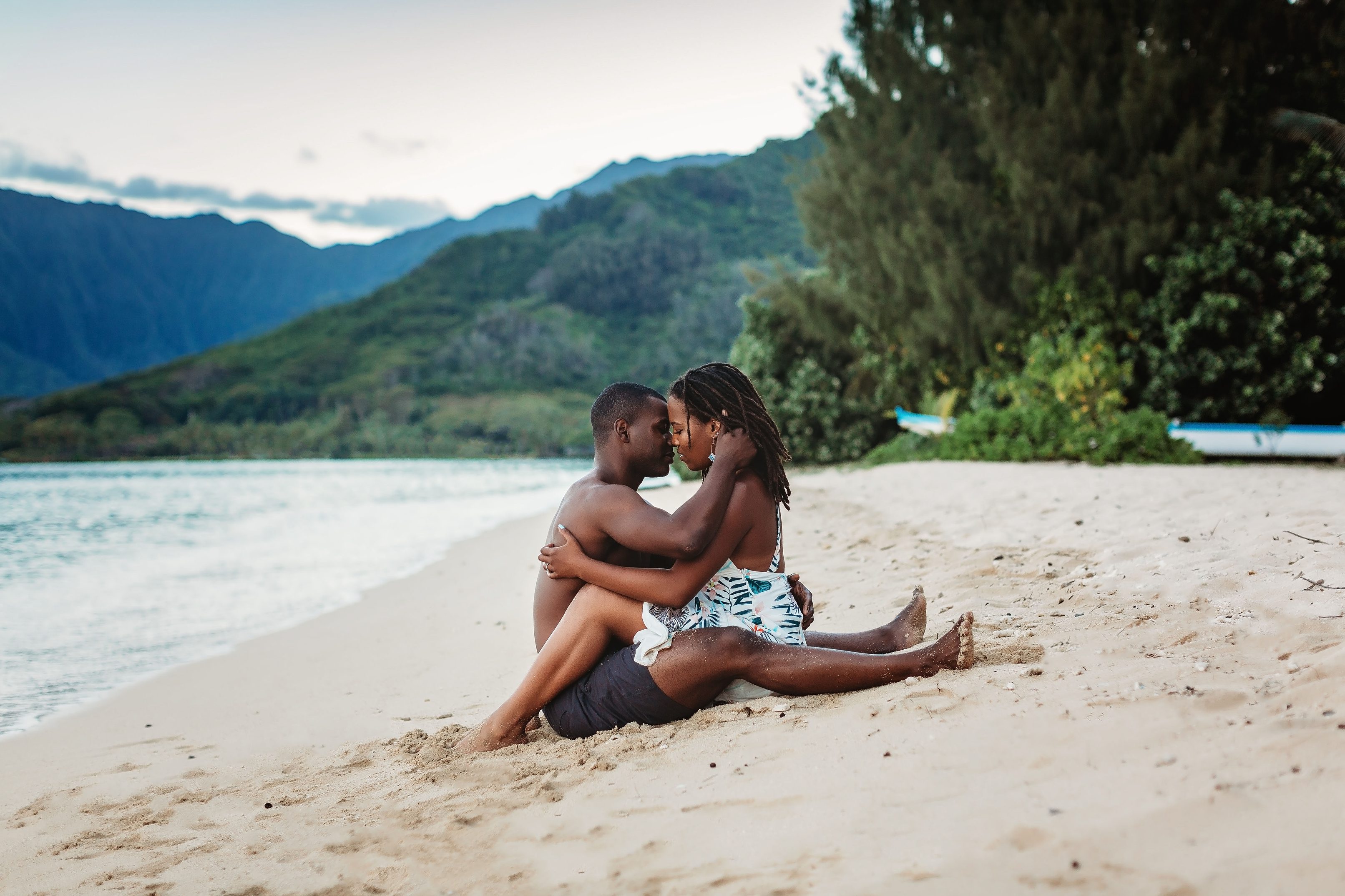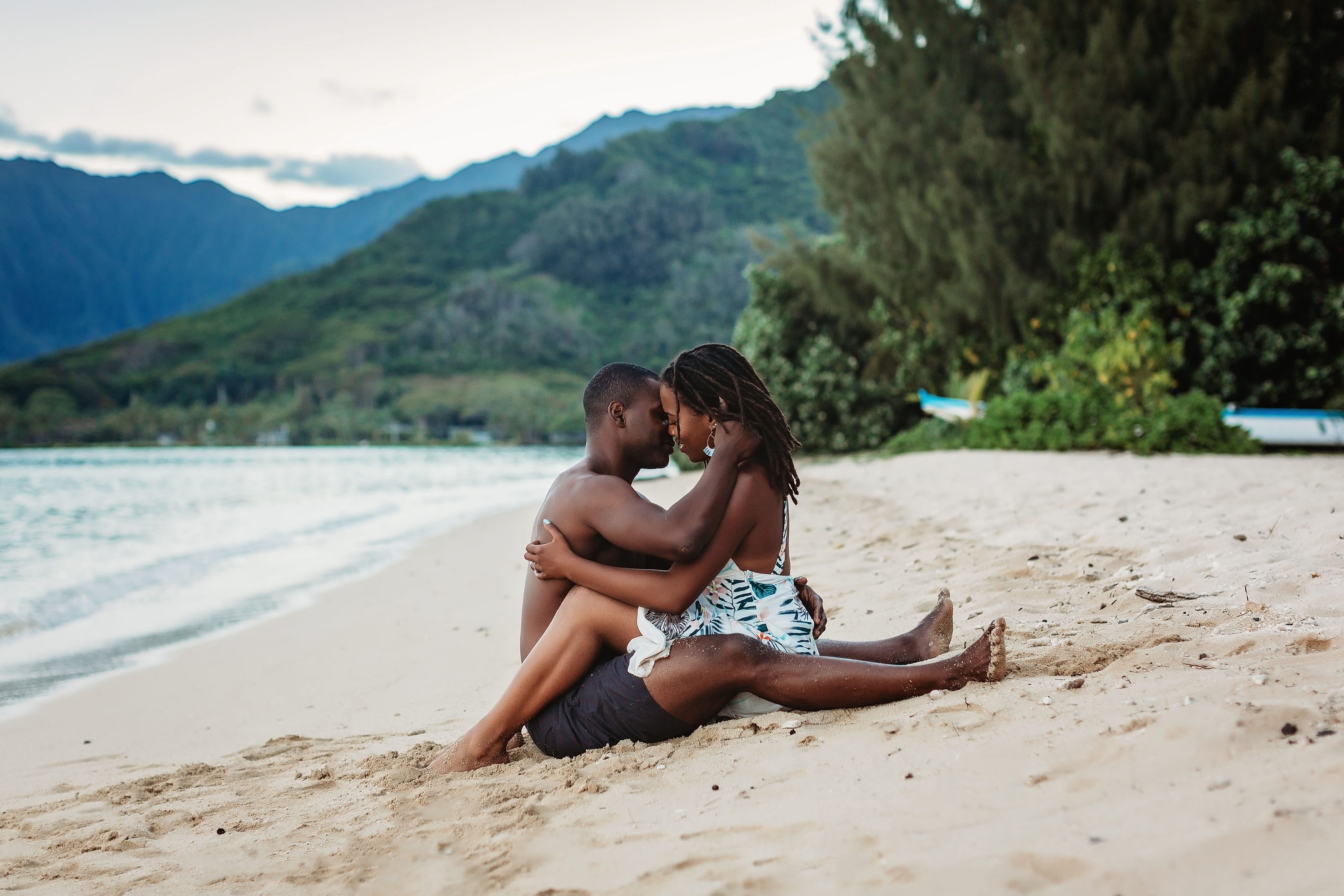You don’t have to ask me twice to head to Secret beach, Kualoa Regional Park– my happy place – for a couples session! That’s where I photographed Sheri and Brian, and it was an absolute dream session in every way.