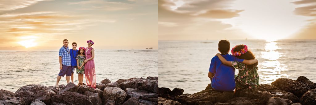 The T family came to Hawaii for just 2 days and Maria contacted me about having a family session since it was her daughter’s birthday weekend. We thought it would be easier to stay close to their hotel since they came for a short trip so we photographed during sunset at the Hilton Hawaiian Village, in Waikiki.