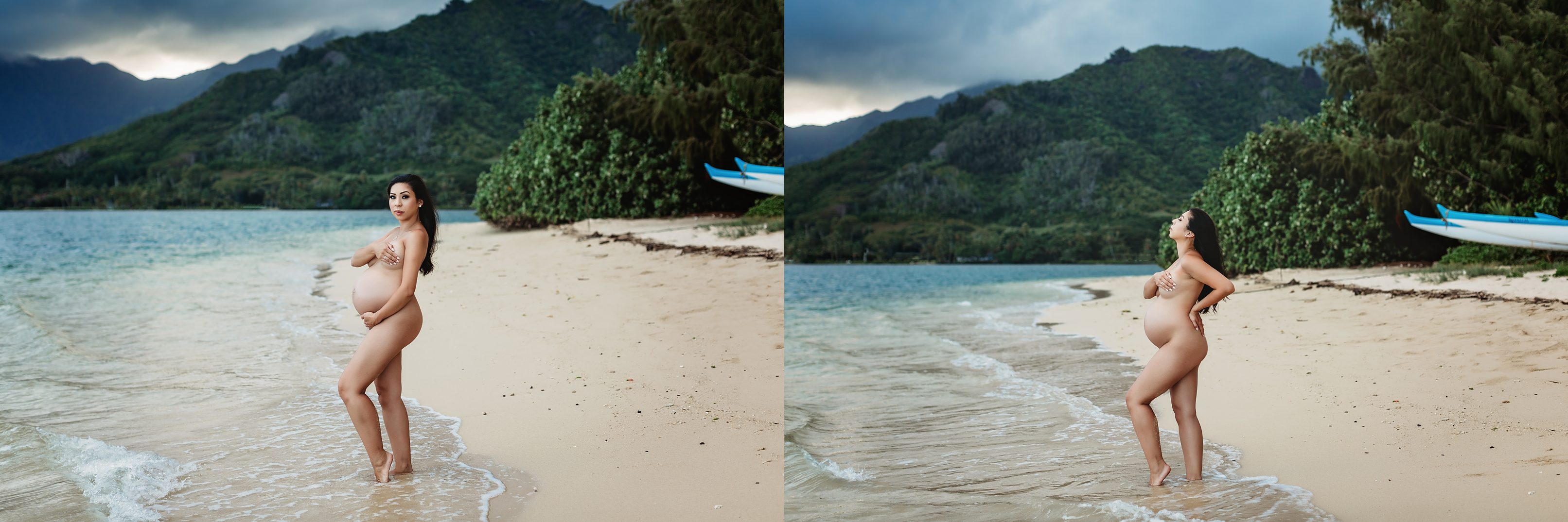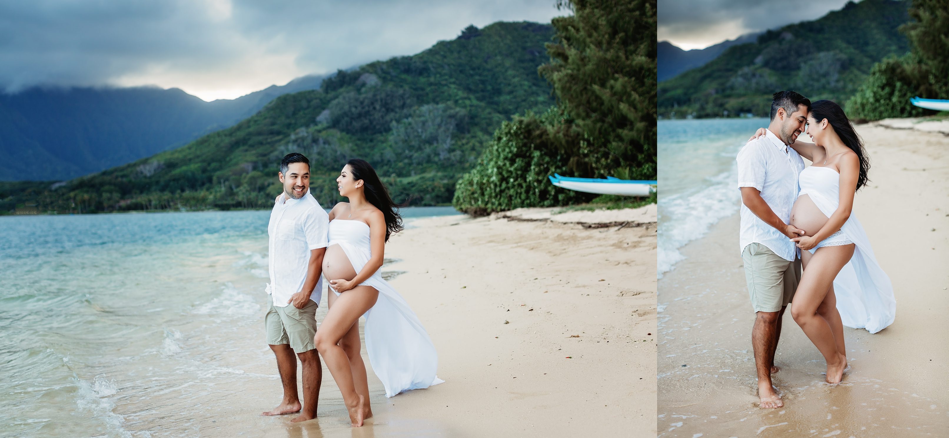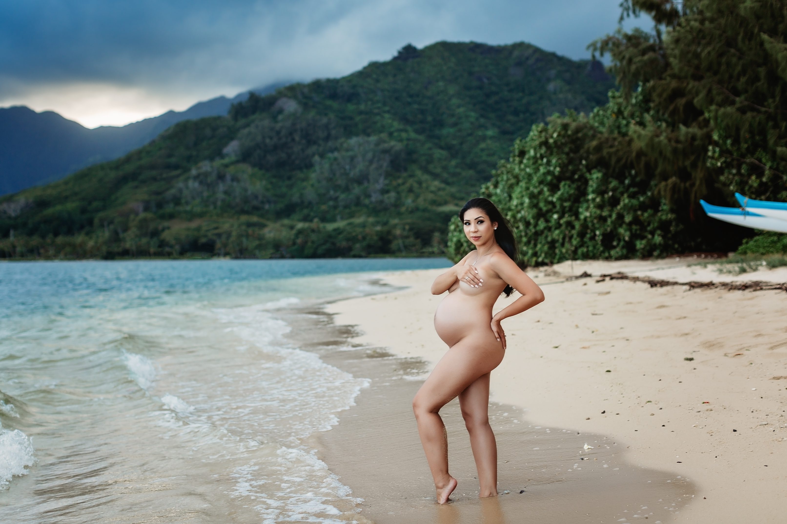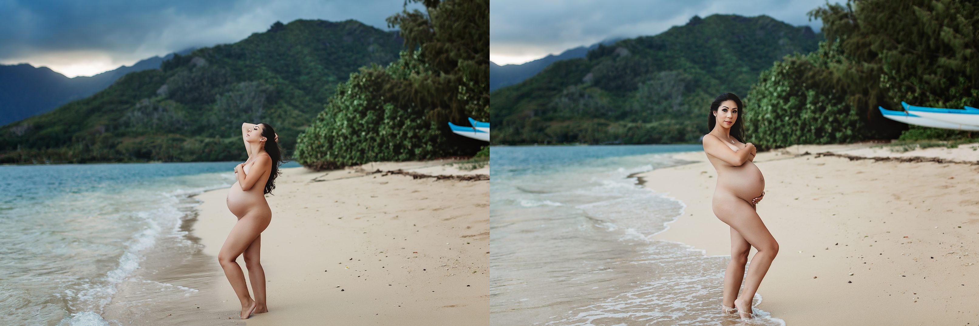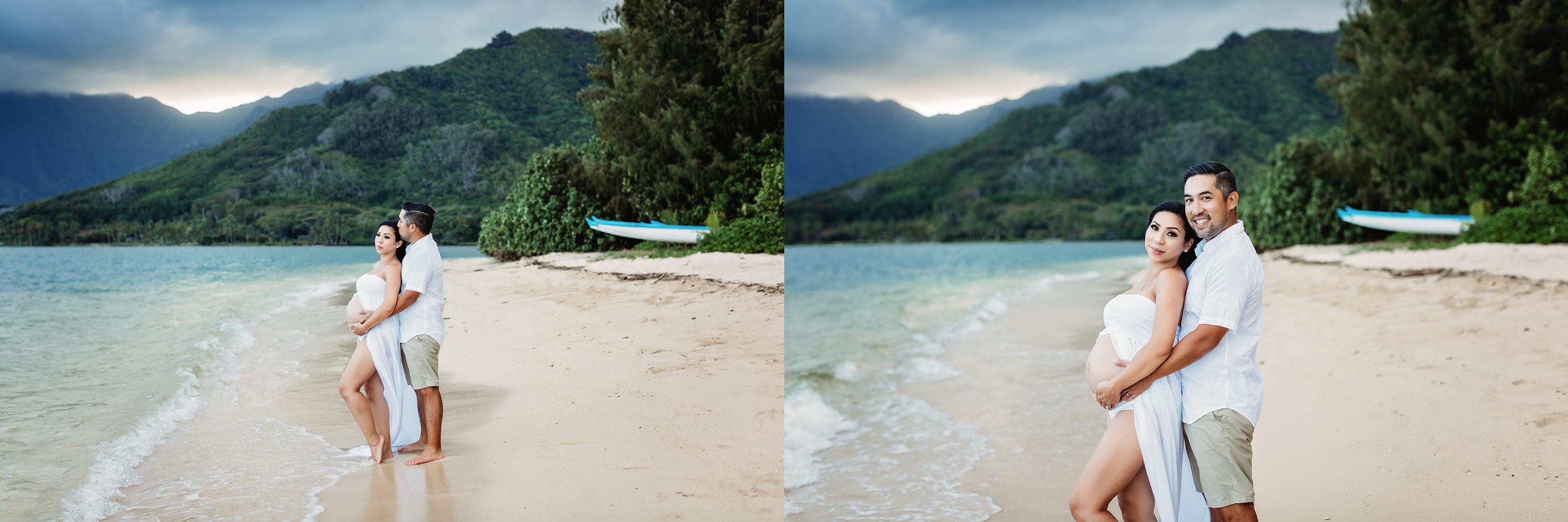 I’m still on a high from photographing Blake and Trish, who’s 7 months pregnant with her little one and looking straight up gorgeous! We headed over to Kualoa Regional Park in Kaneohe, where we were able to utilize a gorgeous mountain backdrop and since it’s a very secluded area, we had a lot of privacy for Trish’s artistic nude photos! Needless to say, from the location to the clothing (and non-clothing) to the light and beyond, every element came together to make for some incredibly beautiful images.