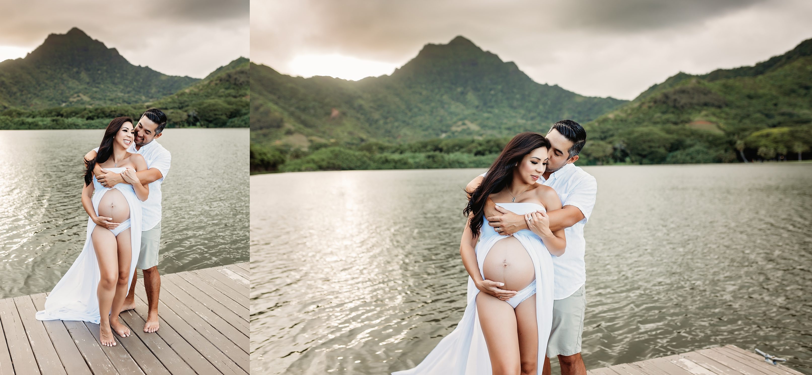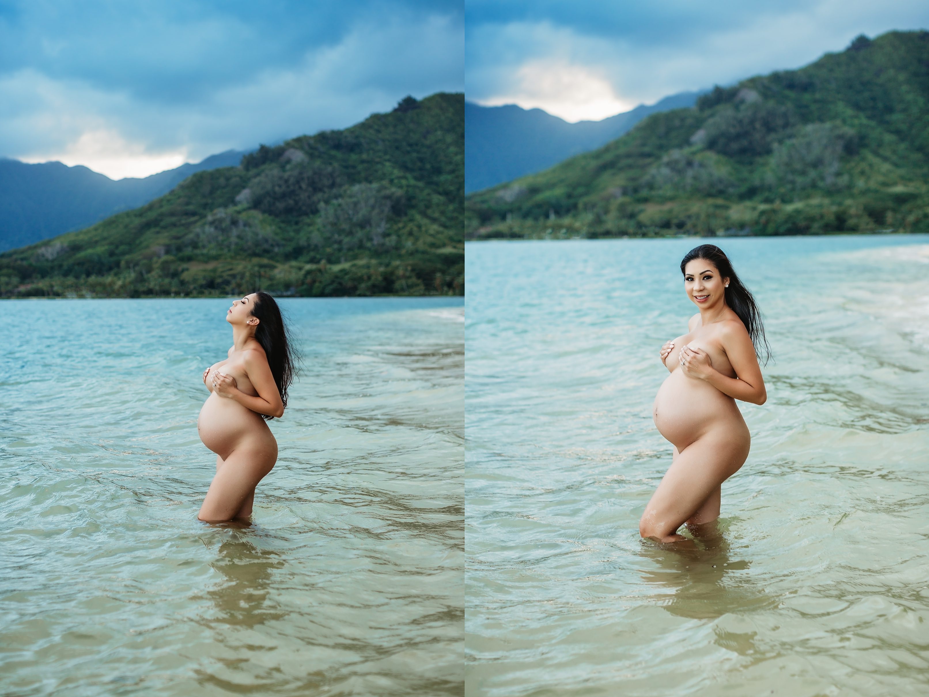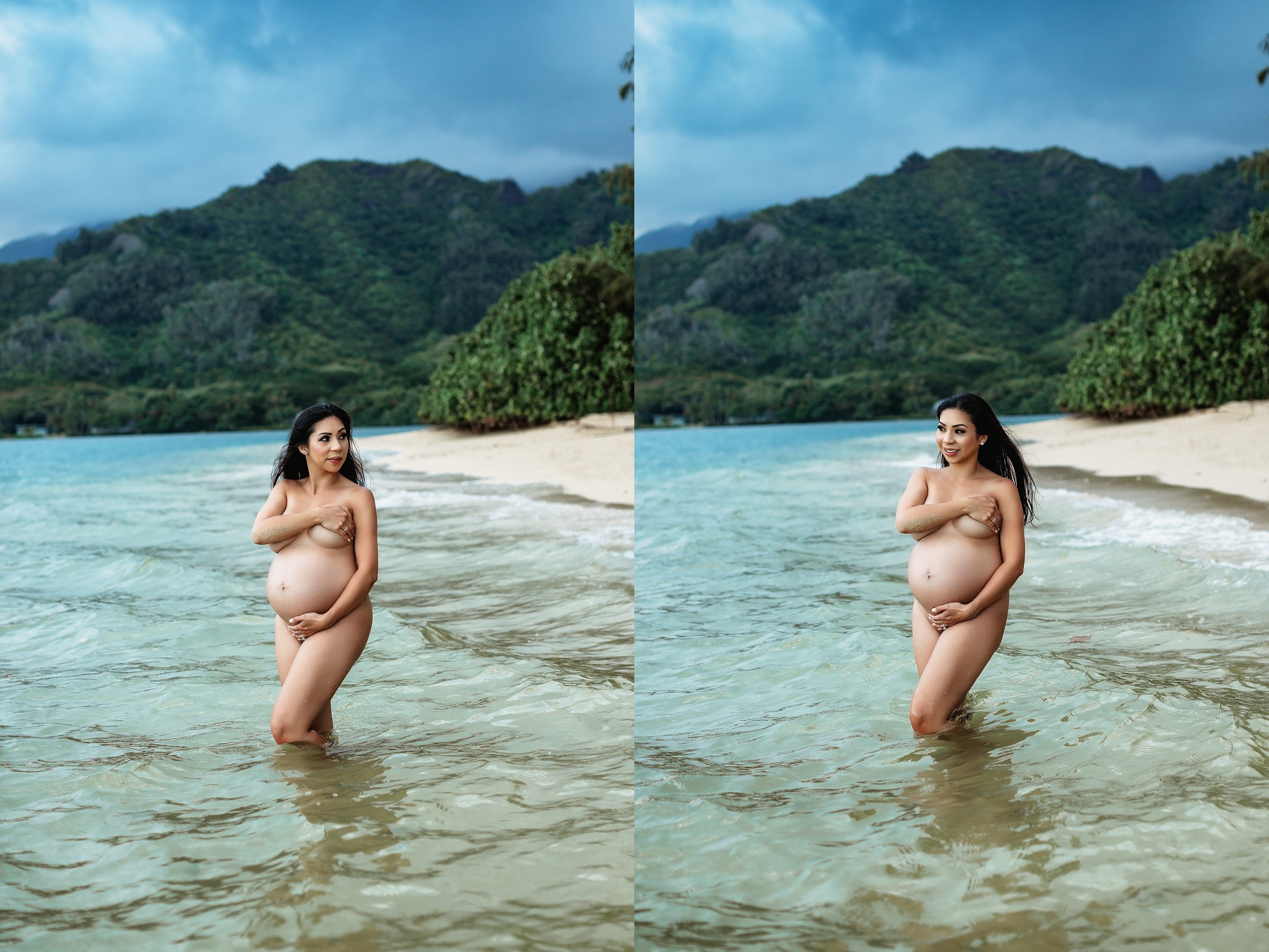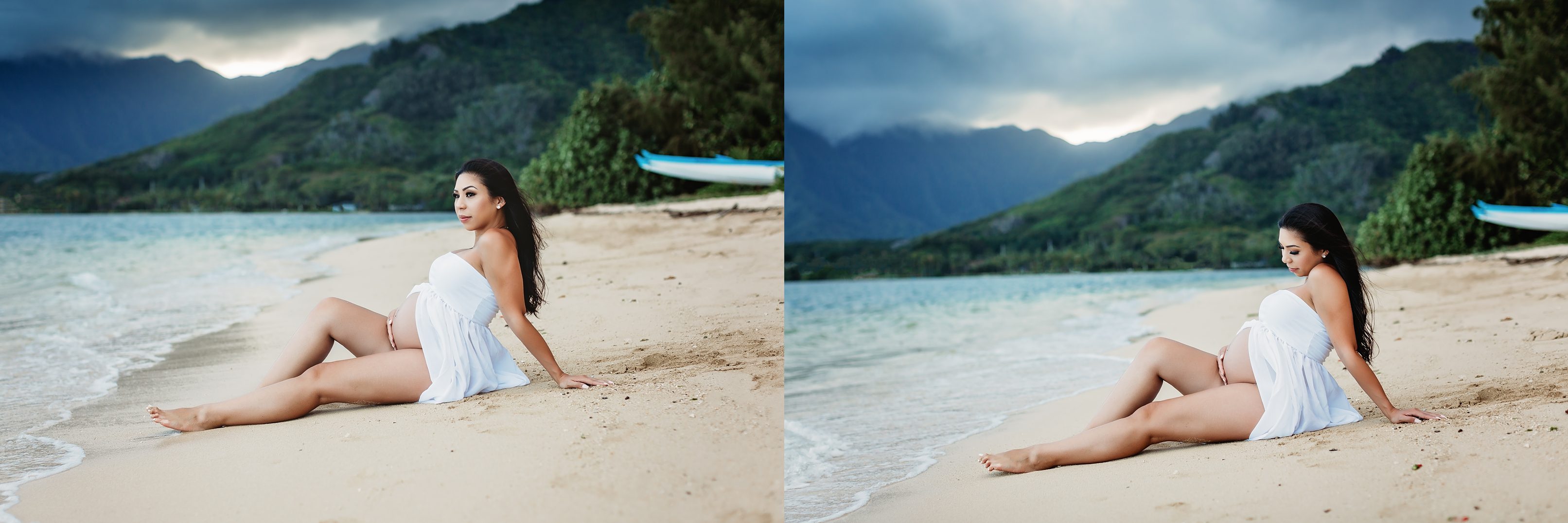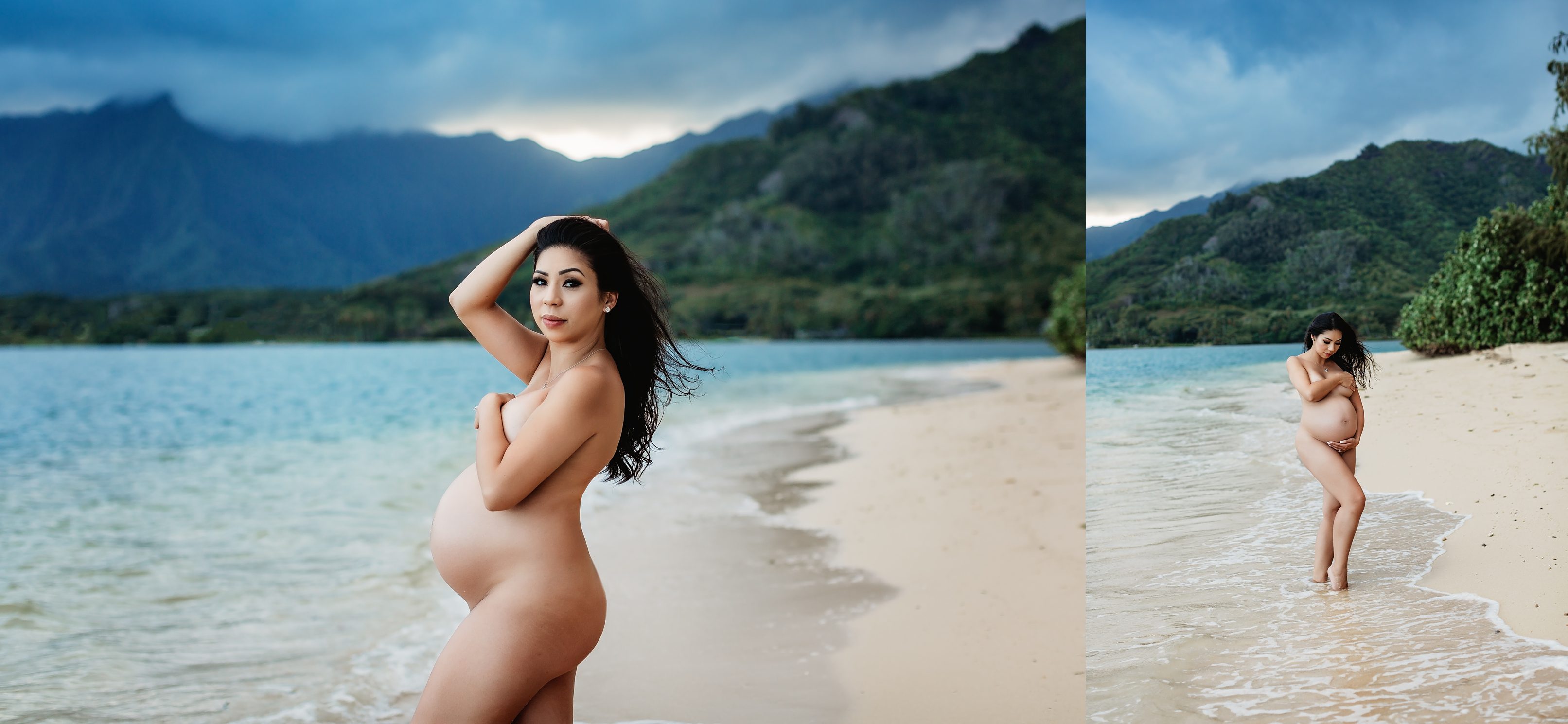 I’m still on a high from photographing Blake and Trish, who’s 7 months pregnant with her little one and looking straight up gorgeous! We headed over to Kualoa Regional Park in Kaneohe, where we were able to utilize a gorgeous mountain backdrop and since it’s a very secluded area, we had a lot of privacy for Trish’s artistic nude photos! Needless to say, from the location to the clothing (and non-clothing) to the light and beyond, every element came together to make for some incredibly beautiful images.