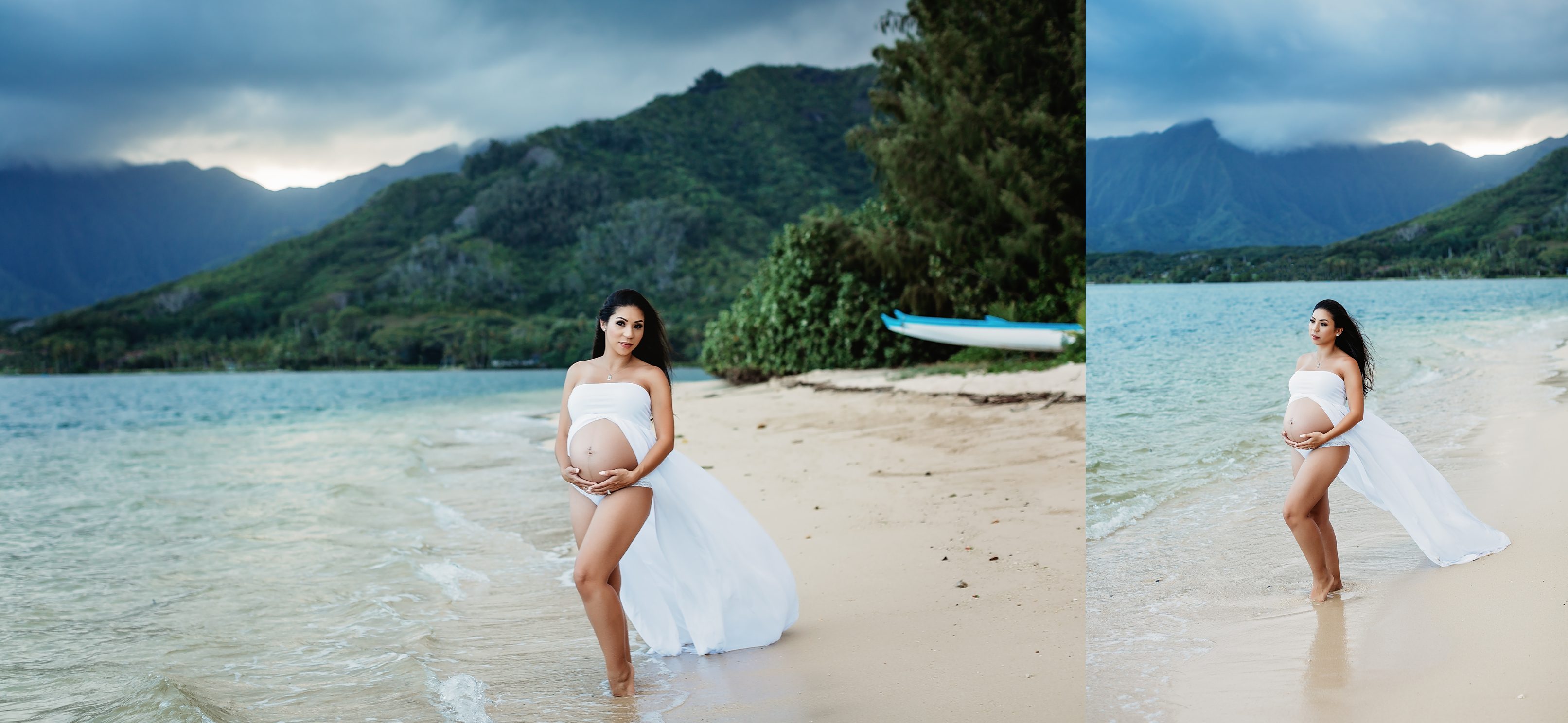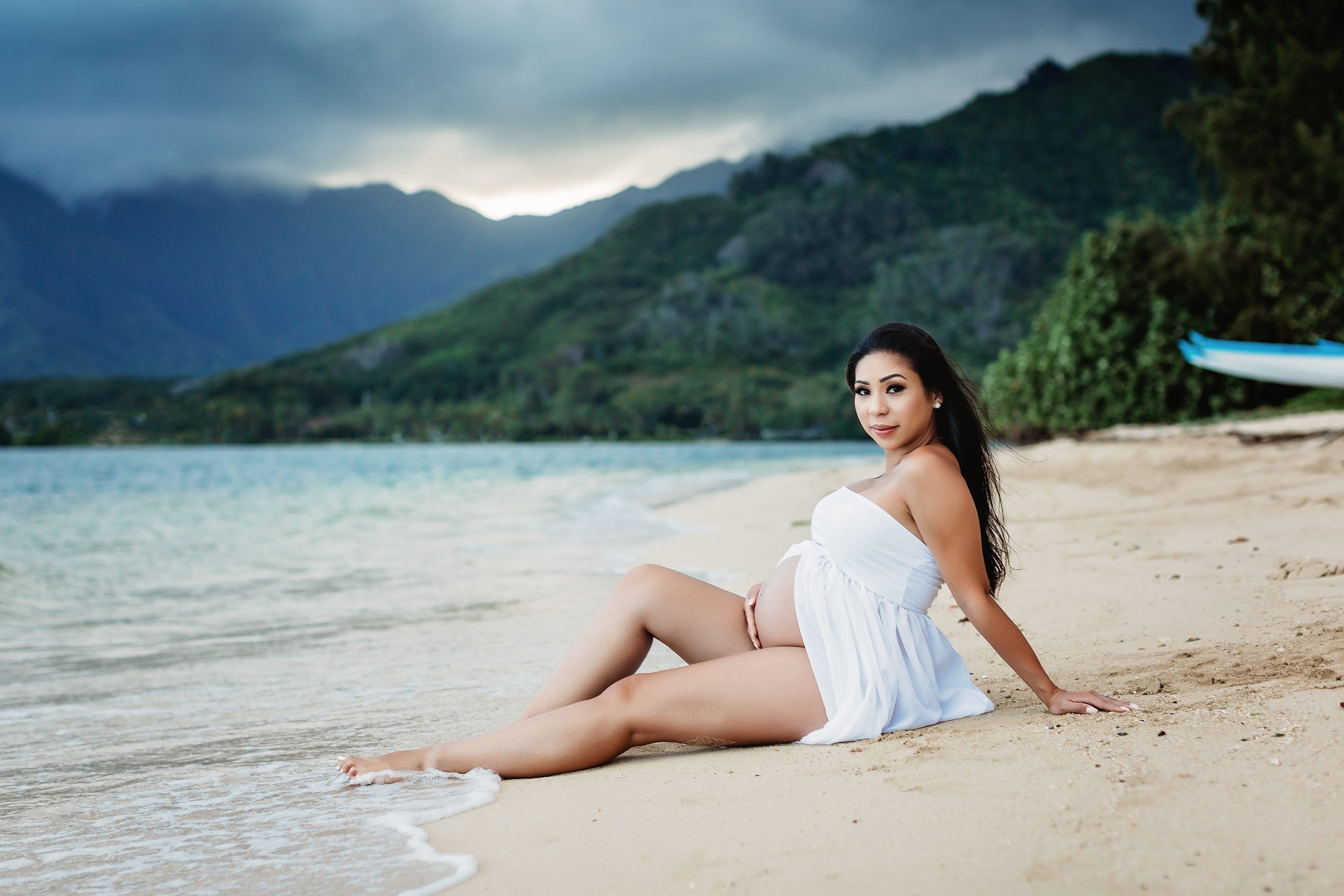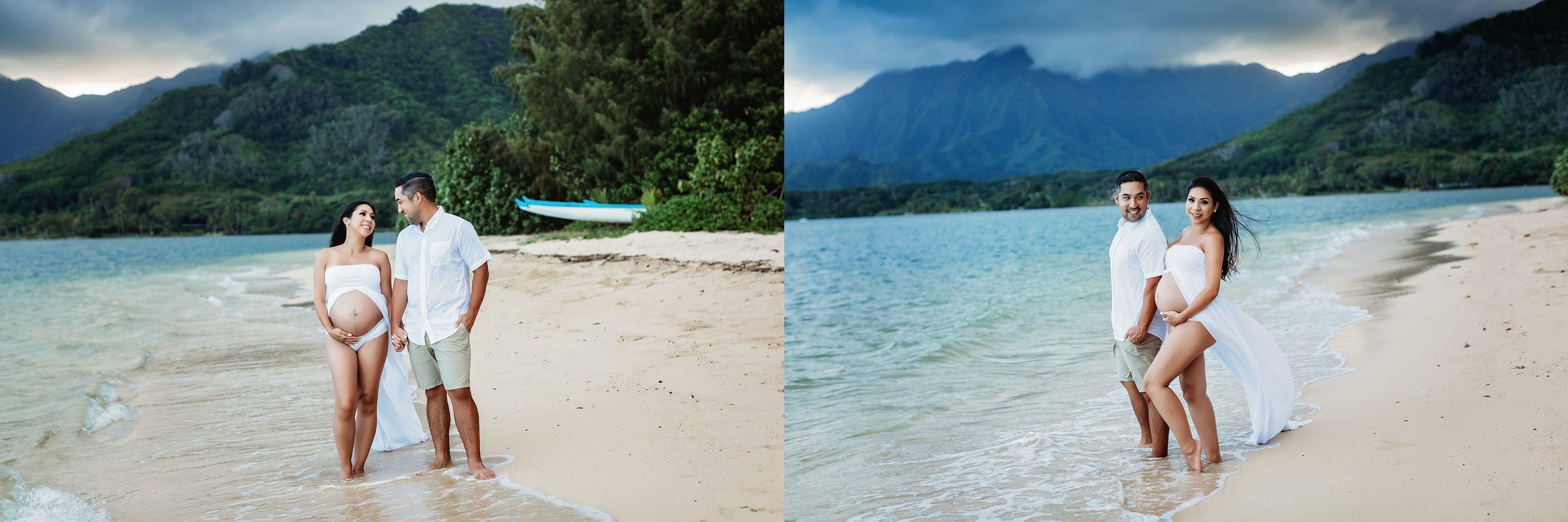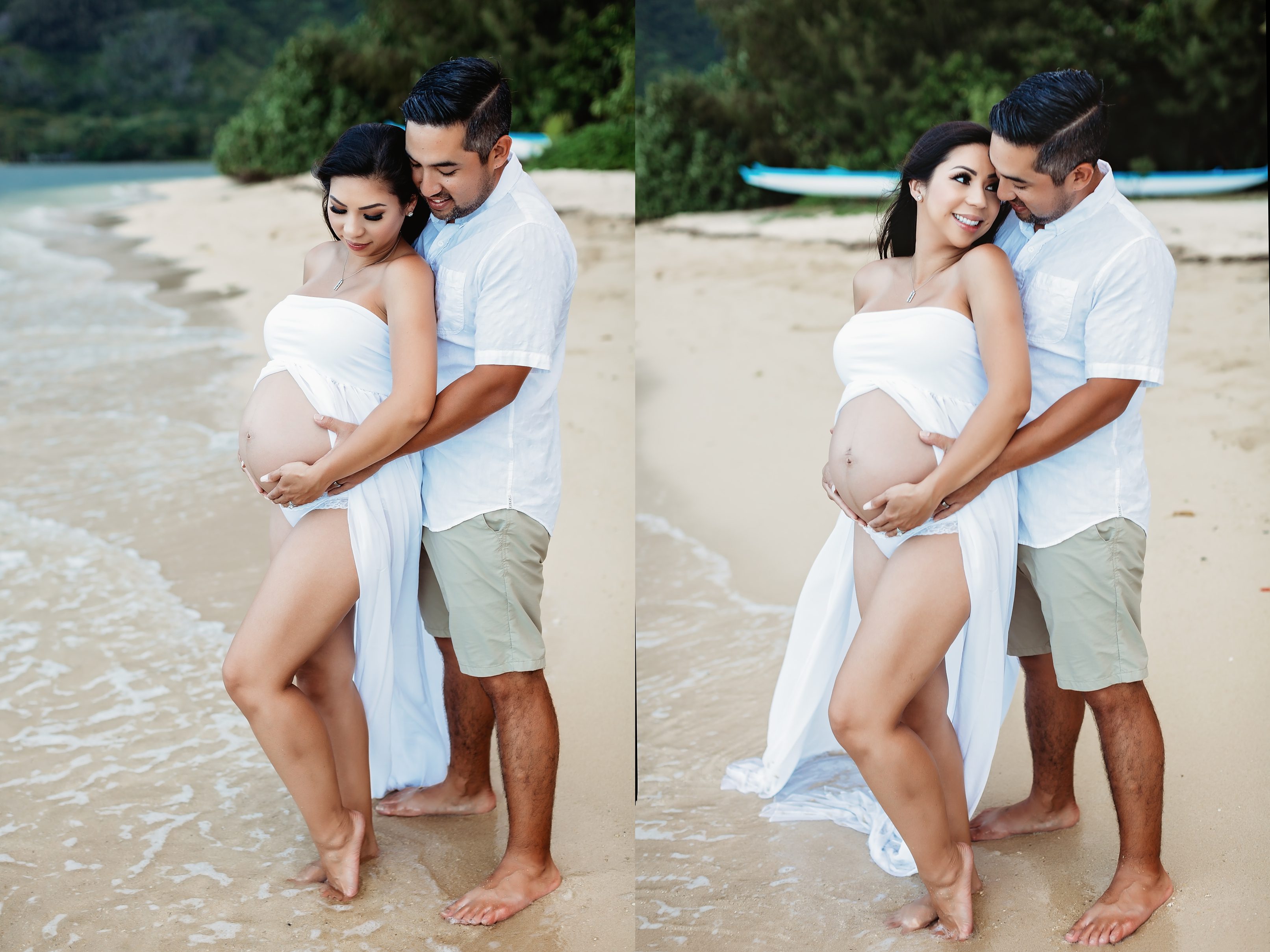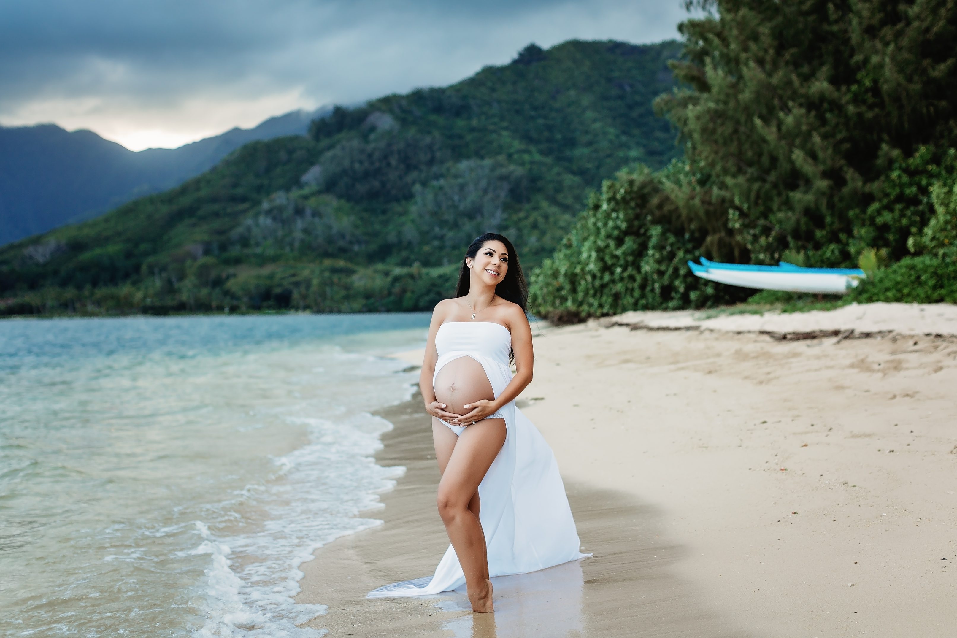 I’m still on a high from photographing Blake and Trish, who’s 7 months pregnant with her little one and looking straight up gorgeous! We headed over to Kualoa Regional Park in Kaneohe, where we were able to utilize a gorgeous mountain backdrop and since it’s a very secluded area, we had a lot of privacy for Trish’s artistic nude photos! Needless to say, from the location to the clothing (and non-clothing) to the light and beyond, every element came together to make for some incredibly beautiful images.